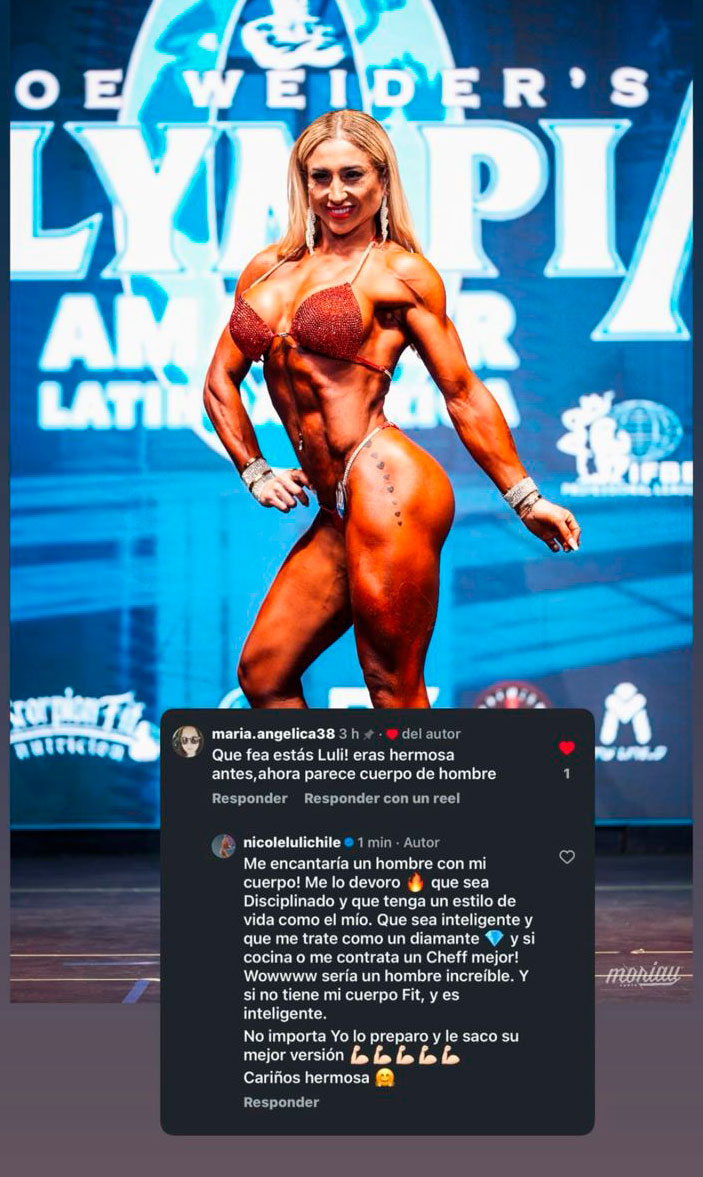 "Seca", "Tienes que hacer videos motivacionales"; "Buena respuesta Luli", fueron algunos de los comentarios aplaudiendo a la fisicoculturista.
