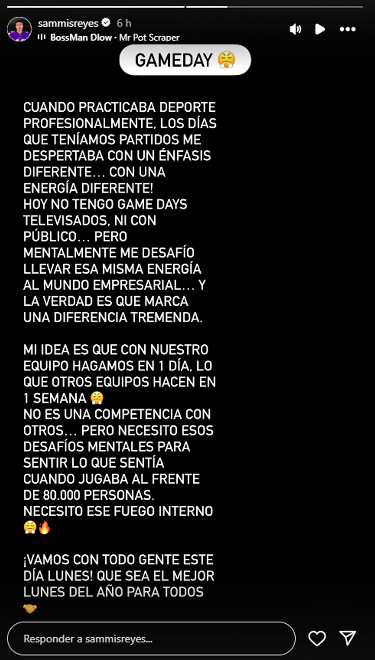 "¡Vamos con todo gente este lunes! Que sea el mejor lunes del año para todos", cerró el mensaje que tituló como "gameday".