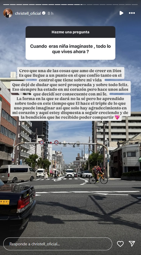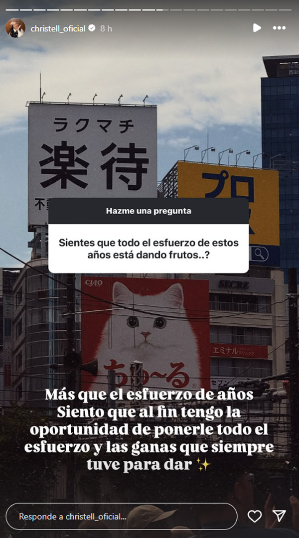 En stories, Christell abrió la caja de preguntas a sus seguidores. Uno de ellos quiso saber si siente que ahora cosecha los frutos después de años en la música.