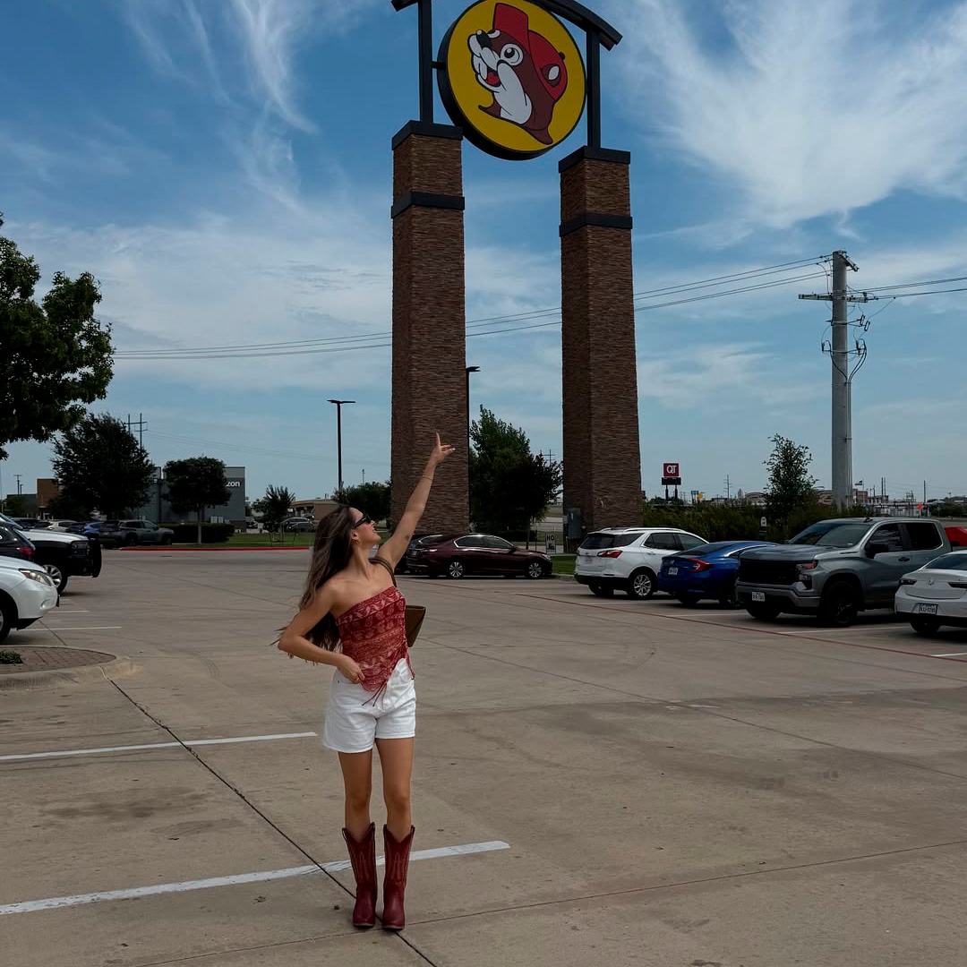 En su cuenta de Instagram, la modelo publicó una serie de registros de su paseo por Fort Worth, donde sacó a relucir su outfit al más puro estilo texano.