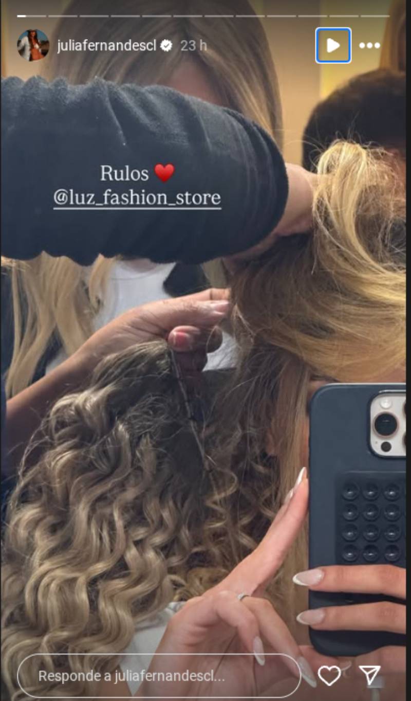 En sus historias de Instagram, Julia Fernandes compartió las fotos de su poderosa transformación. En ellas, su cabello luce radiante y voluminoso gracias a los rizos que se hizo en un salón de belleza de Santiago.
