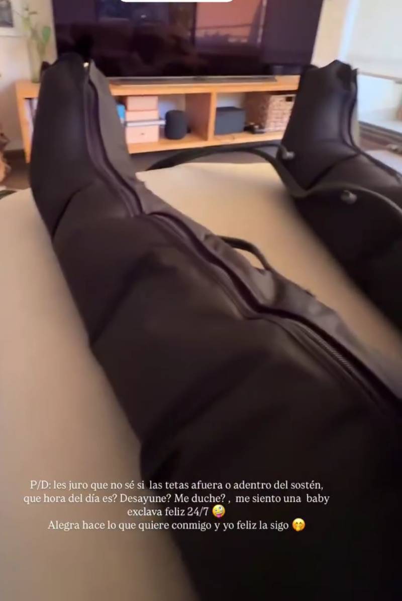 La argentina también enfoca en su video el estado de sus piernas, las cuales estaban enfundadas en botas de compresión, un accesorio terapéutico que ayuda a mejorar la circulación.