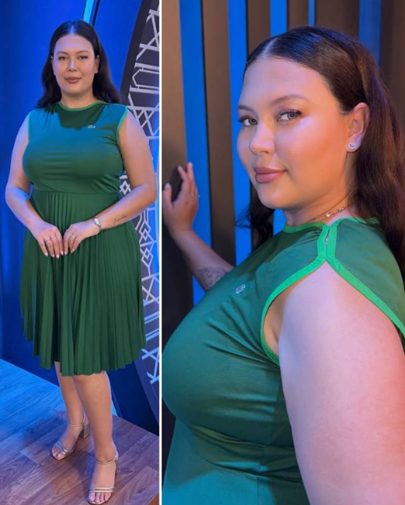 Michelle Carvalho luce con elegancia un vestido plisado estilo tenis en color verde bosque: ¿Cuánto cuesta?