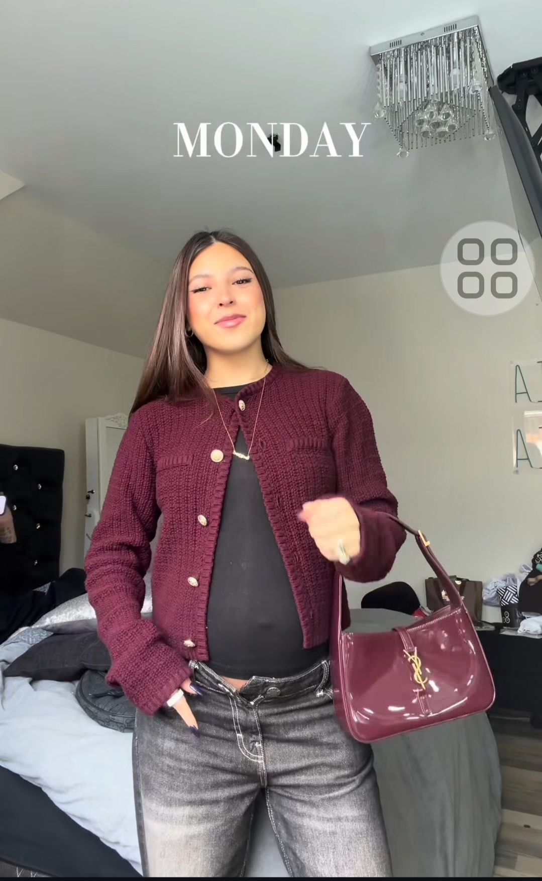 Ignacia Antonia fusionó el negro omnipresente con el sofisticado burdeos para un outfit de inicio de semana y triunfó logrando un atuendo casual. La polola del cantante urbano Ak4:20 eligió un cardigan en ese color vino tinto que causa furor, con una textura de punto similar al tejido tweed.