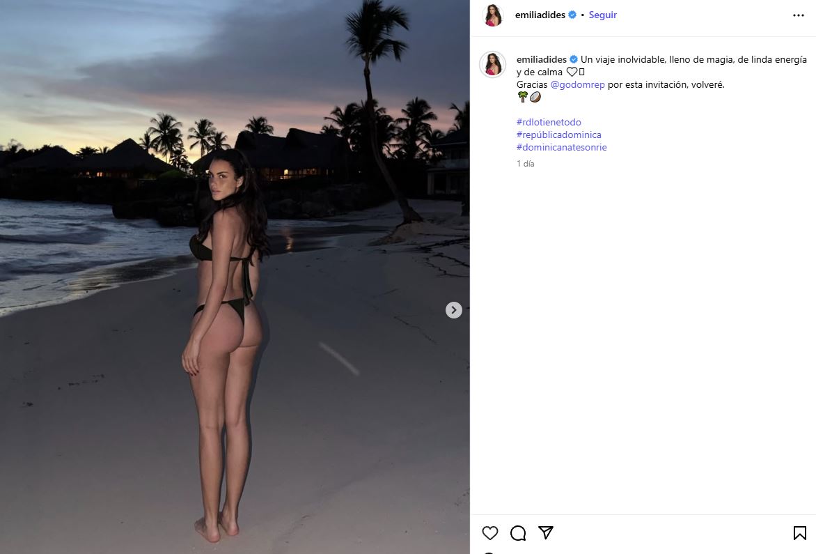 Posteriormente, Dides publicó otras fotografías, donde luce un traje de baño diferente y posa de espaldas en el atardecer dominicano.