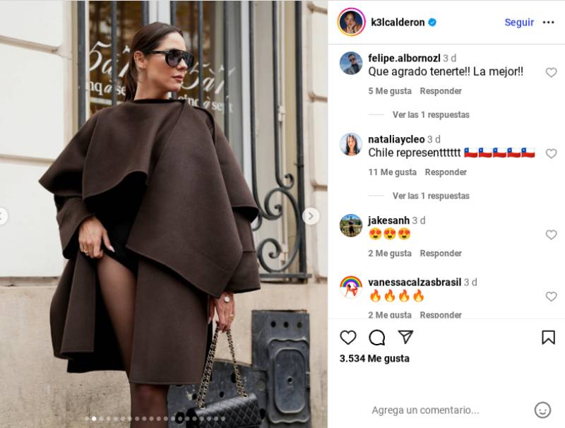 Kel Calderón alcanzó la cúspide del glamour con un abrigo capa. La llamativa prenda de la firma Arket, teñida en color marrón moca, la envolvió en aires de sofisticación con un diseño asimétrico único.