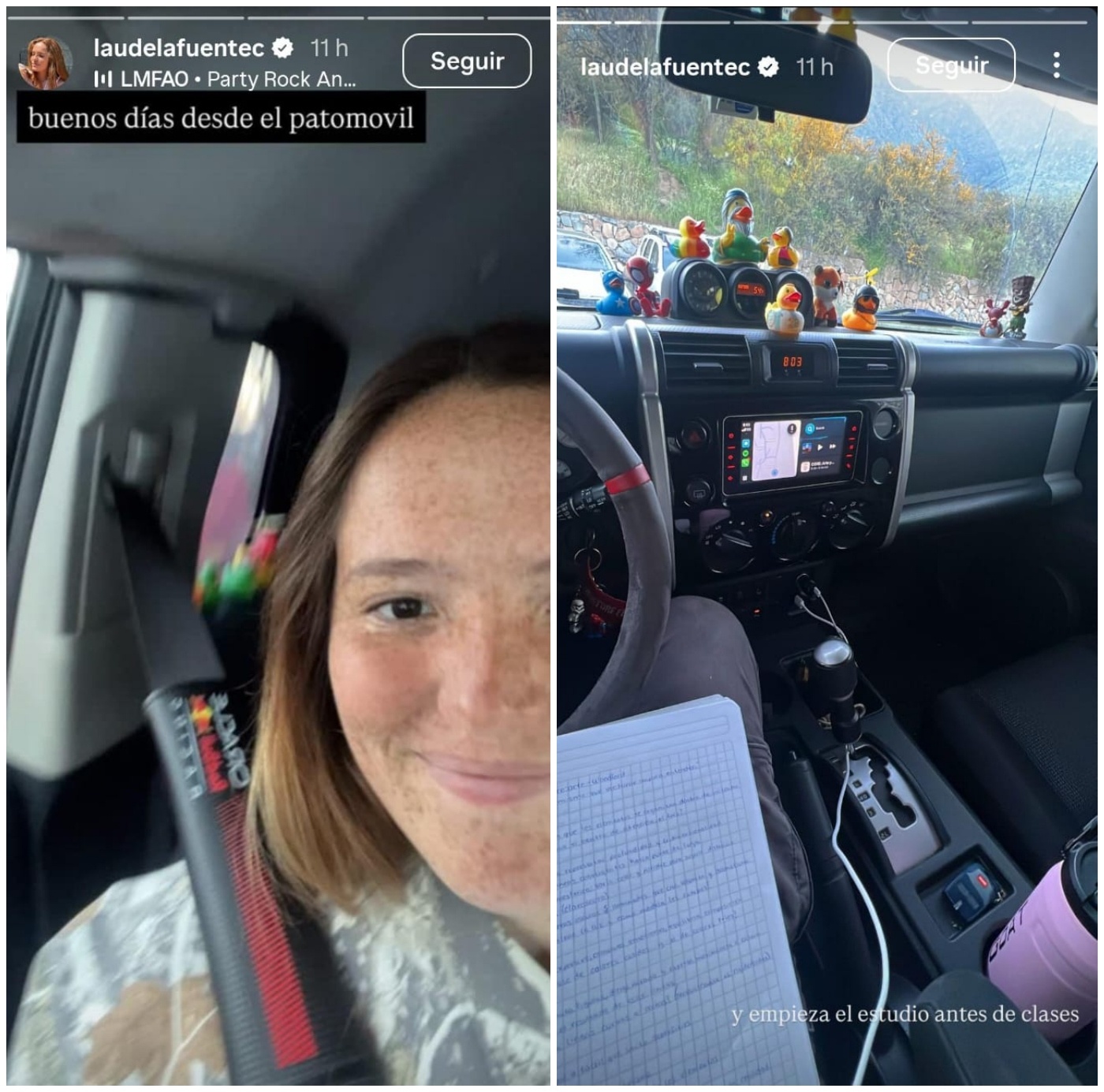 "Y empieza el estudio antes de clases", destacó Laura en otra historia, donde demuestra que el "patomóvil" es también un rincón en el que se concentra y repasa los apuntes de su cuaderno con calma.