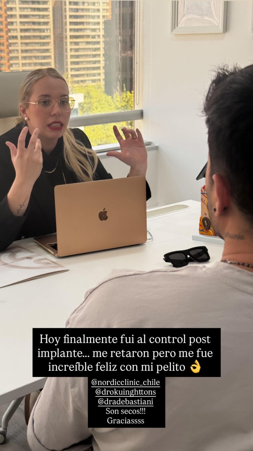 En Instagram, el también empresario posteó una foto desde la consulta médica. “Hoy, finalmente, fui al control postimplante. Me retaron, pero me fue increíble. Feliz con mi pelito”, explicó.