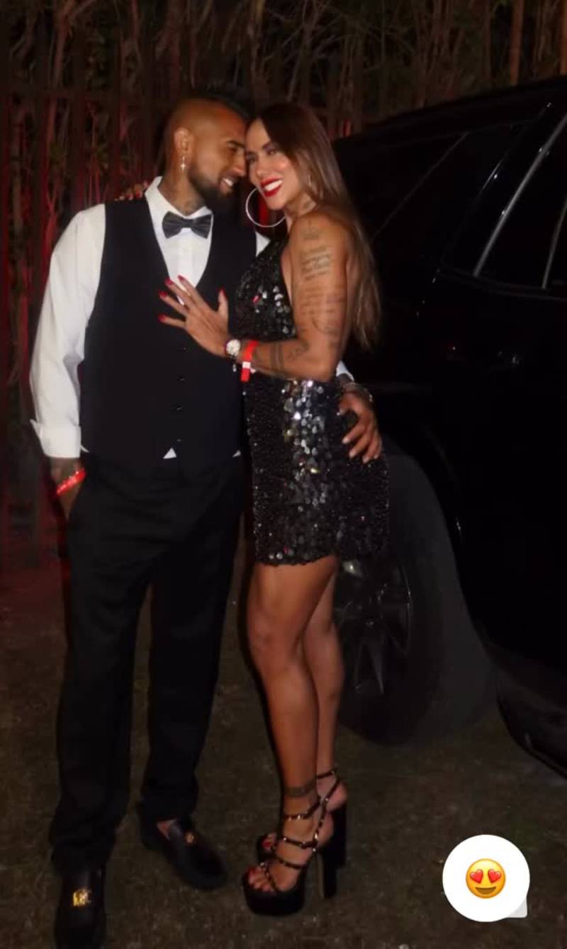 Arturo Vidal y Sonia Isaza elegantes en el show de Rauw Alejandro