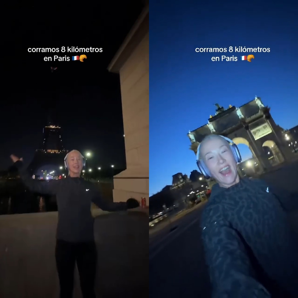“Kilómetro tres, voy corriendo al lado del río Senna. Kilómetro cuatro, voy camino al Louvre. Está amaneciendo”, expresó. "Me siento demasiado afortunada y al universo gracias por haber podido hacer esto”, agregó, mientras se acercaba al museo Louvre.