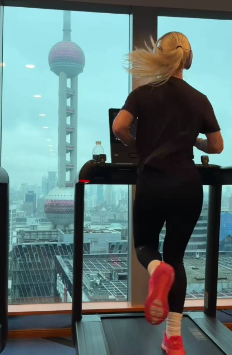 La influencer nacida en Canadá mantuvo su hábito del running mañanero con un recorrido de 8 kilómetros por los lugares más emblemáticos de París, días antes de ejercitarse ante una impresionante vista en Shangái.