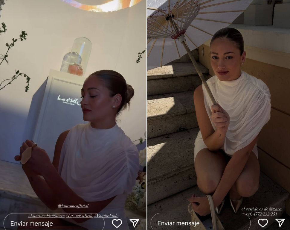 La influencer escogió un minivestido blanco, cuyo diseño brindó un dejo de romanticismo perfecto para el ambiente soñado con el que se preparó el lanzamiento del producto.