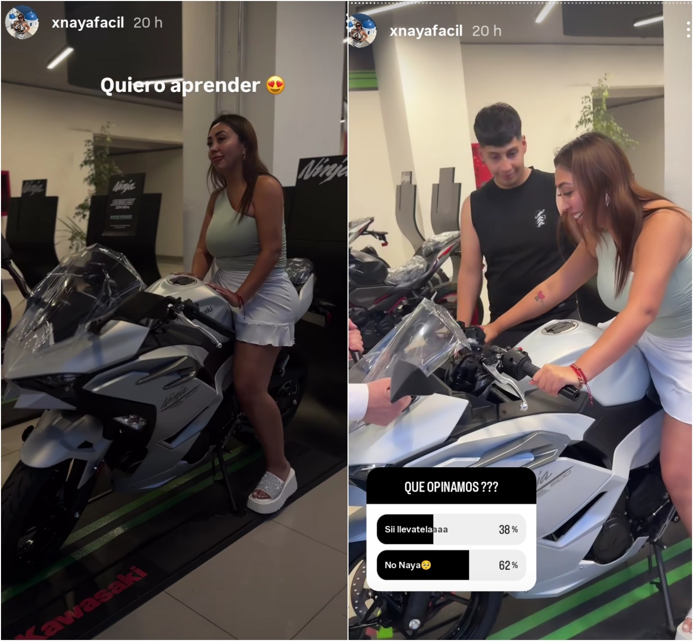 "Vinimos a ver motos. Hace rato que me pica el bichito de sacar la licencia de moto", relató en sus historias.