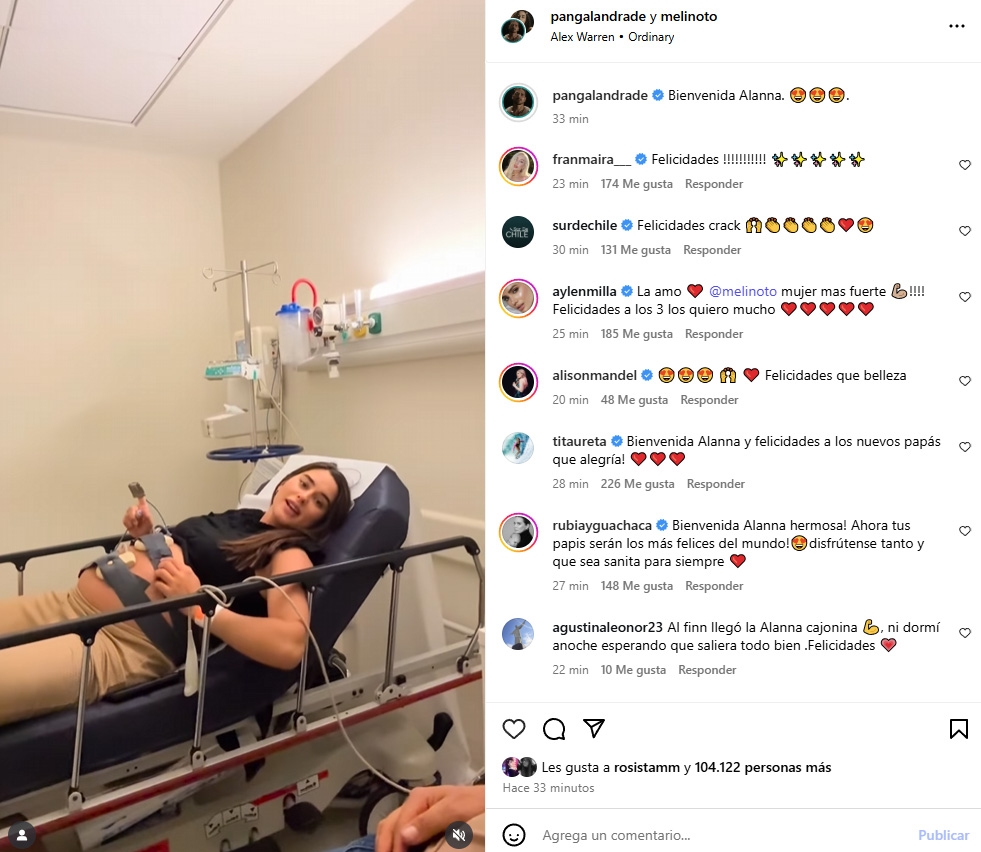 Por su parte, Javiera Acevedo señaló: "Bienvenida, Alanna hermosa! Ahora tus papis serán los más felices del mundo! Disfrútense tanto y que sea sanita para siempre", mientras que Alison Mandel destacó el bello momento que viven junto a su recién nacida con un "felicidades, qué belleza".
