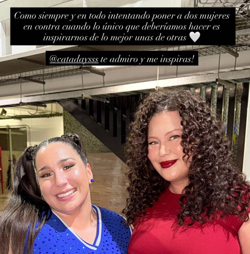 Carvalho también quiso desmentir los rumores de una supuesta rivalidad con otra concursante. “Como siempre y en todo, intentando poner a dos mujeres en contra, cuando lo único que deberíamos hacer es inspirarnos de lo mejor unas de otras. Cata Díaz, te admiro y me inspiras”, dijo en sus historias de Instagram.