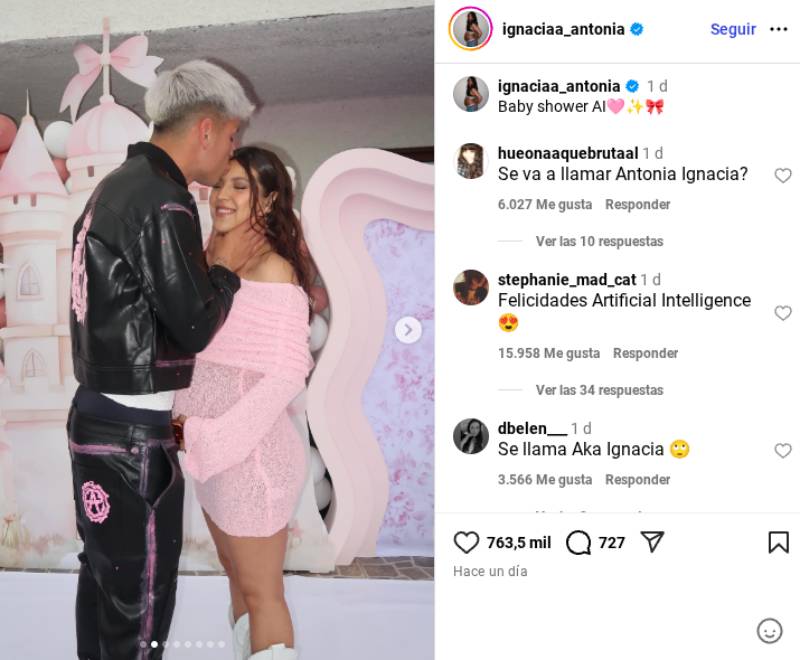 “Baby shower AI”, escribió la joven de 24 años al pie de las instantáneas, y eso fue suficiente para desatar un hilo de comentarios entre los internautas que comenzaron a especular sobre el nombre de la bebé.