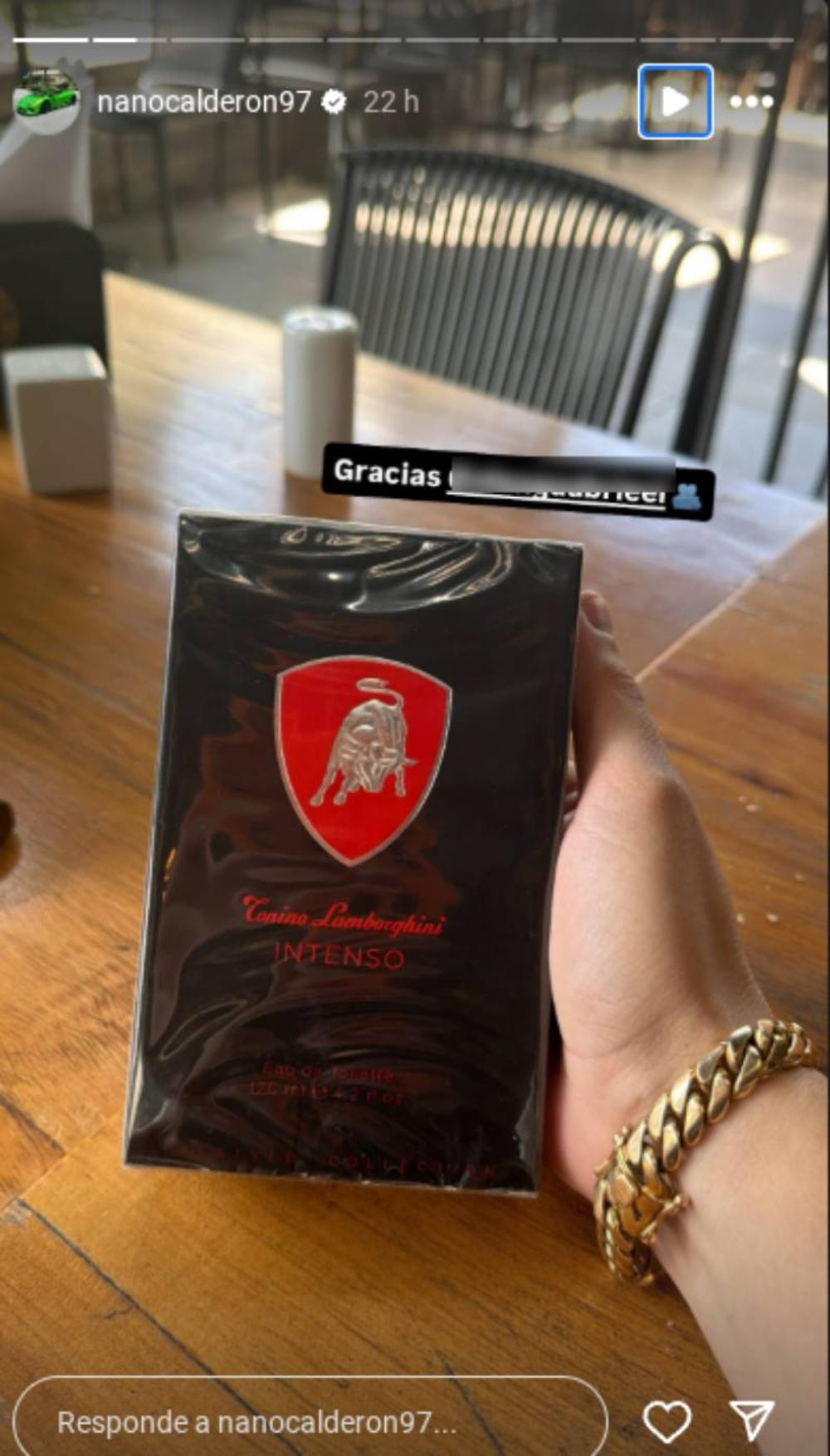 Posteriormente, mostró el obsequio que le dio su acompañante: un perfume de la línea Tonino Lamborghini, edición Intenso.