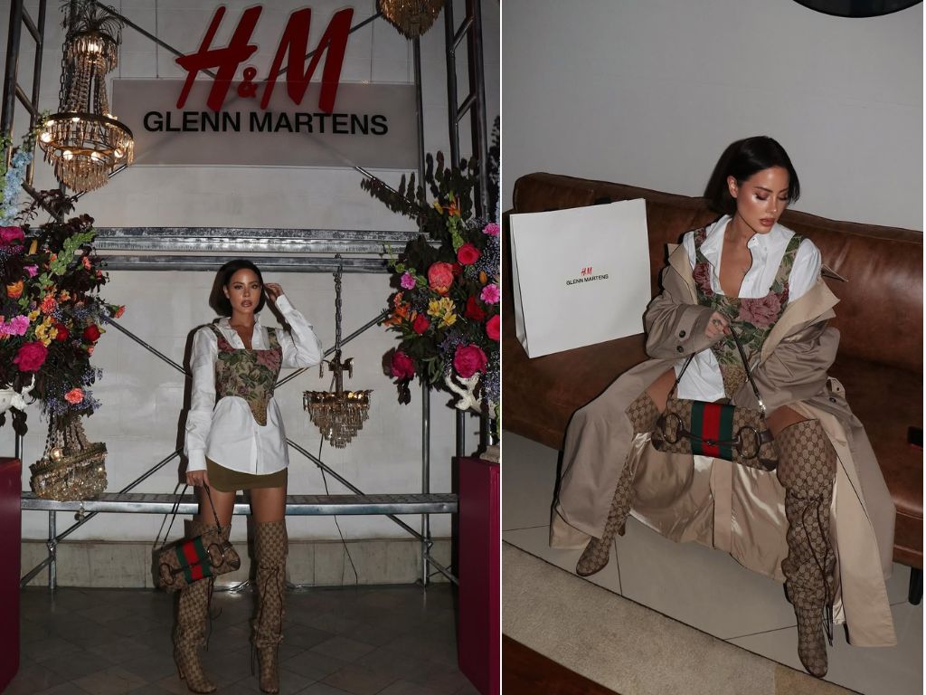 La empresaria acudió al lanzamiento de la colección H&M Glenn Martens y su outfit causó sensación por esta prenda, símbolo de la sofisticación, y los accesorios de lujo de la firma italiana.
