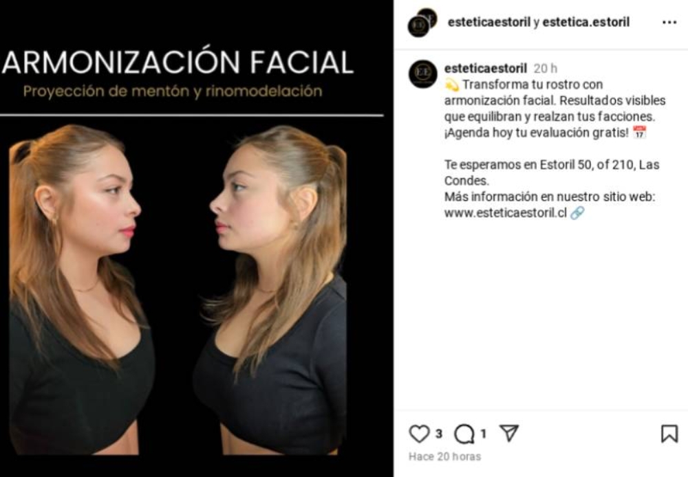 Según se aprecia en un post de Instagram de la clínica, Labra decidió realizarse una armonización en dos zonas de su cara: proyección de mentón y rinomodelación, técnicas que permiten perfilar el rostro sin cirugía.