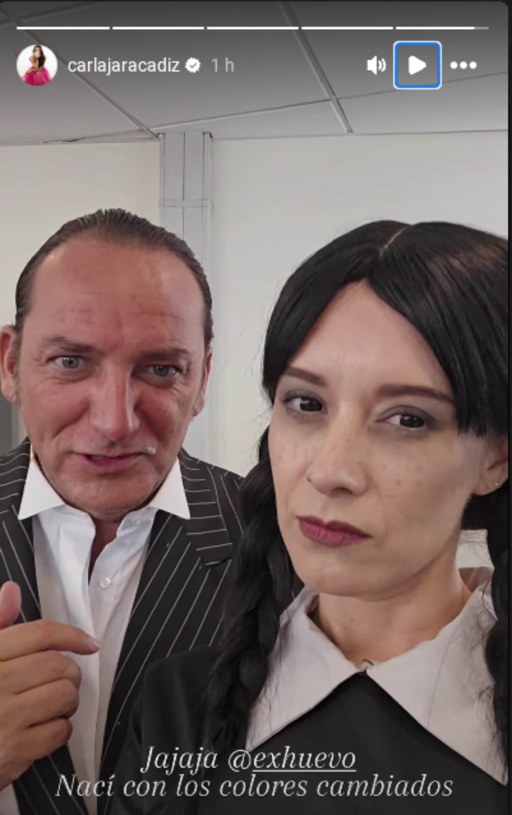 Posteriormente, Jara mostró al "ex Huevo" ya transformado en el esposo de Morticia. El presentador aprovechó la ocasión para sugerir a Jara adoptar este nuevo look. “¿Yo debería teñirme el pelo?”, preguntó Carla.