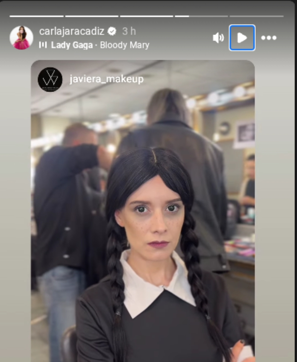Para la celebración de Halloween, Carla Jara se convirtió en Merlina, el personaje de “Los Locos Addams" que inspiró la famosa serie remake protagonizada por Jenna Ortega.