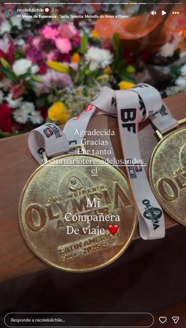 "Agradecida. Gracias por tanto, Santuario de Los Andes. Mi compañera de viaje", escribió la mujer en un video donde se ve al interior del santuario con sus dos medallas obtenidas en Brasil.