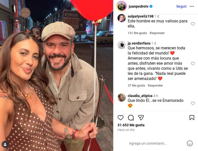 En su cuenta de Instagram, Juan Pedro publicó una tierna foto que se tomó junto a la cantante durante una salida nocturna. En la imagen se los ve sonreír a la cámara, relajados, felices y disfrutando del momento.