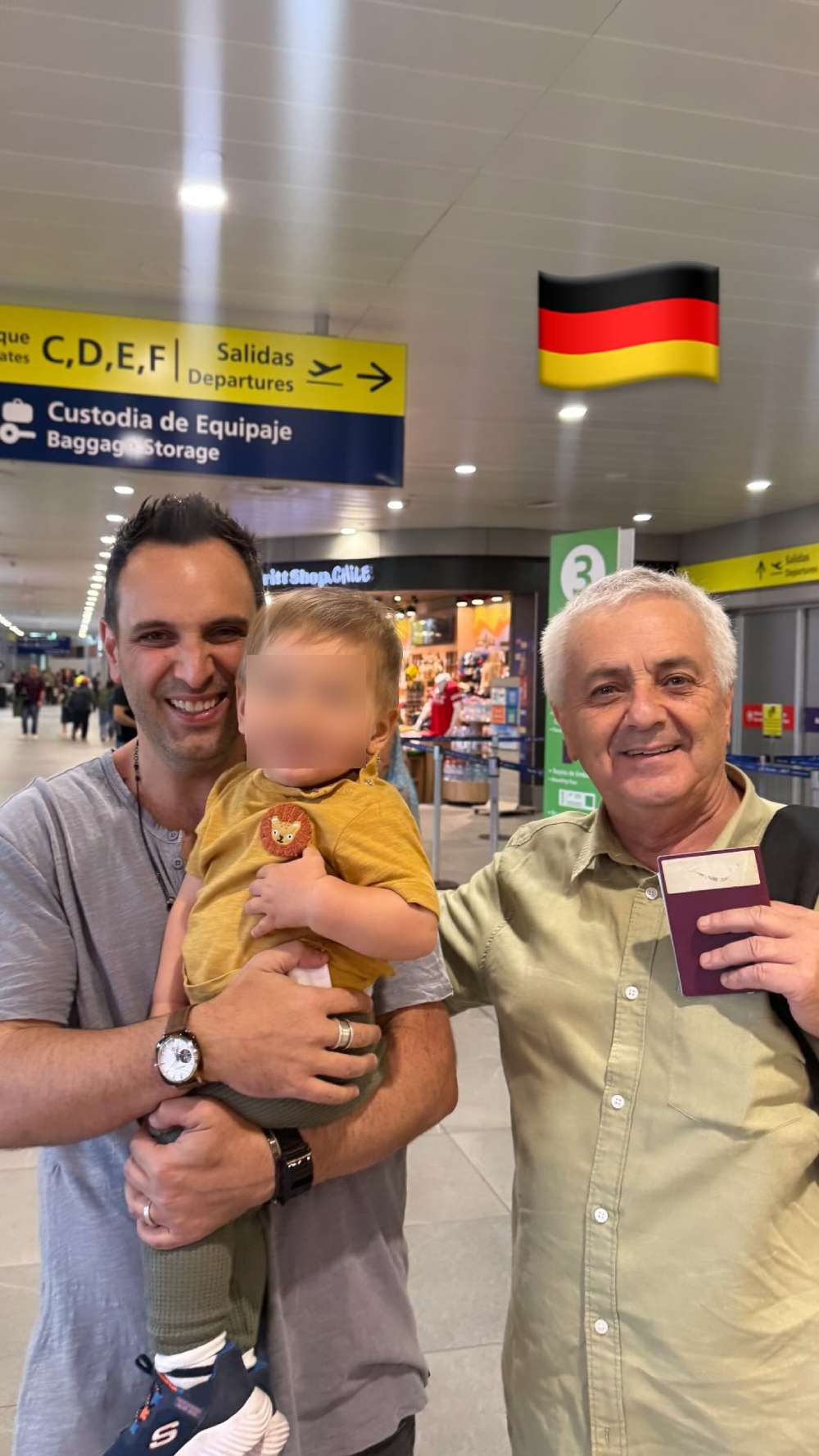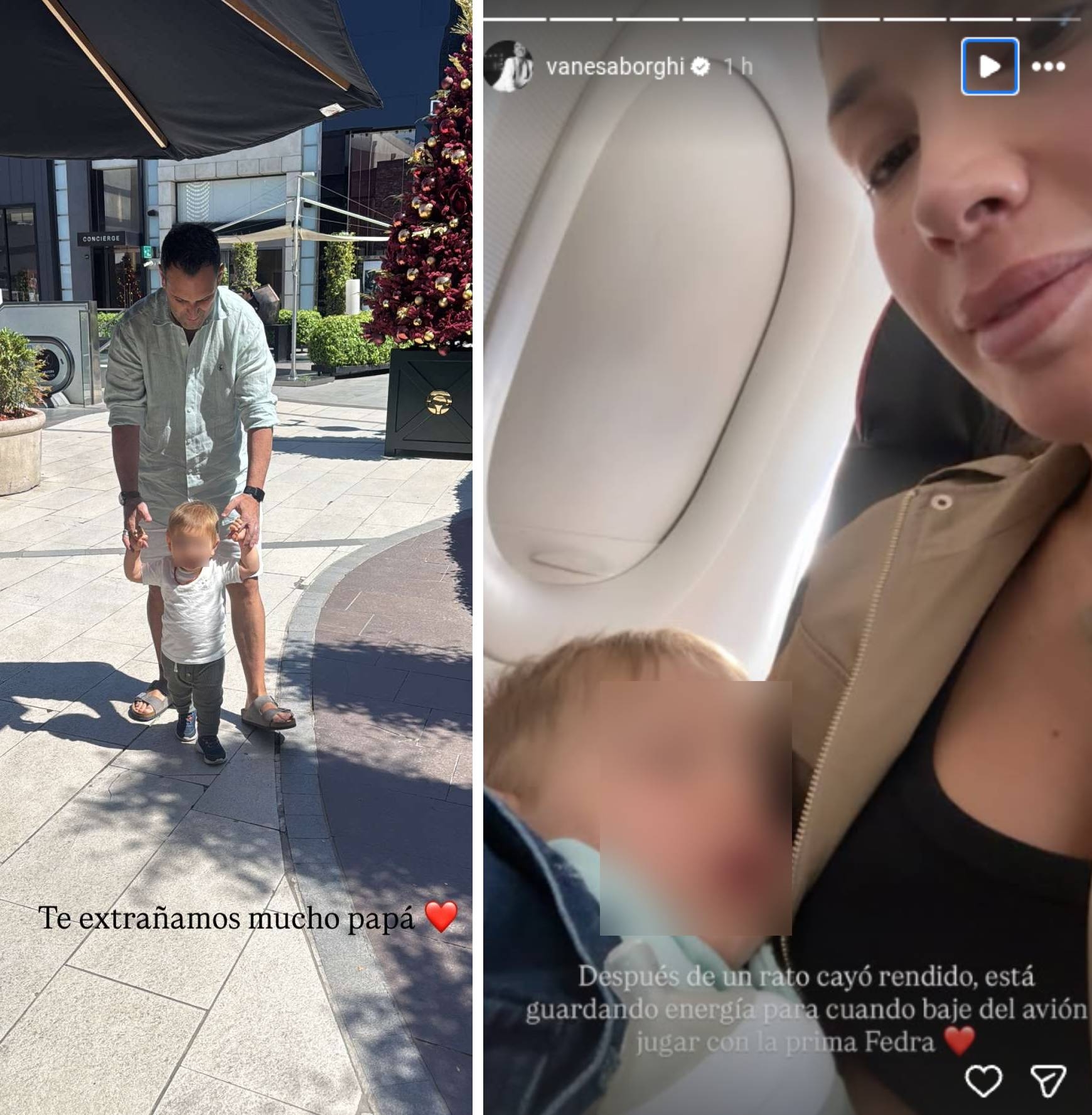 El pequeño Teo, hijo de ambos, los acompañó al aeropuerto y también le dijo adiós a su papá y a su abuelo, a quienes madre e hijo ya extrañan desde que salieron del país hace pocas horas.