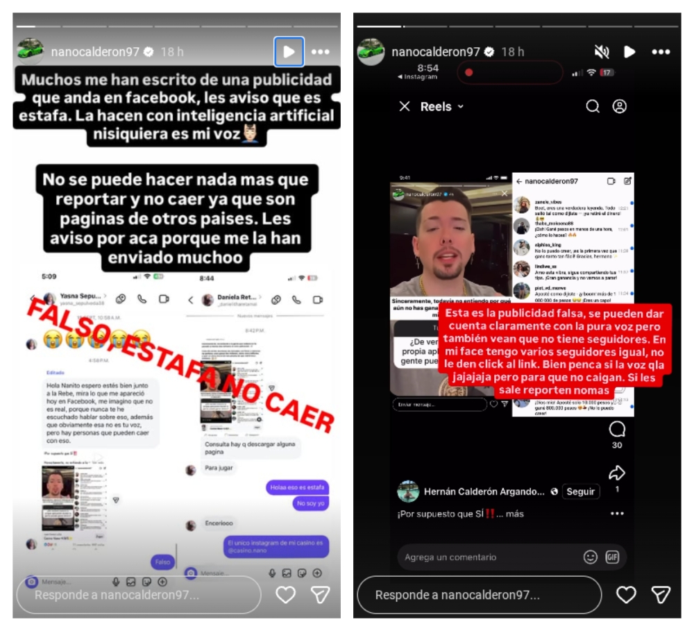 "La hacen con inteligencia artificial": Nano Calderón alerta que usan su imagen para estafar en redes sociales