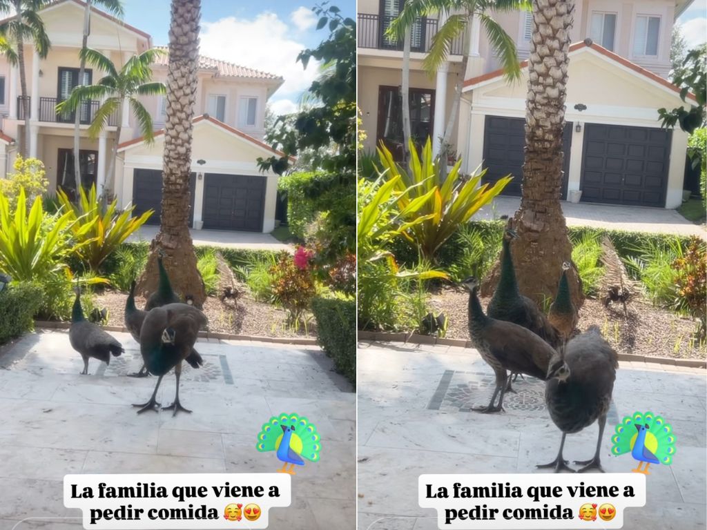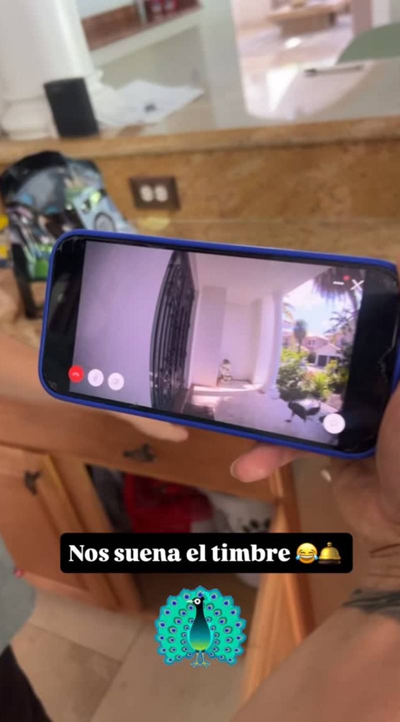 “Nos suena el timbre”, escribió en sus historias de Instagram, al percatarse de la presencia de las aves a través de las cámaras de seguridad, imágenes que pudo ver desde su teléfono mientras cocinaba.