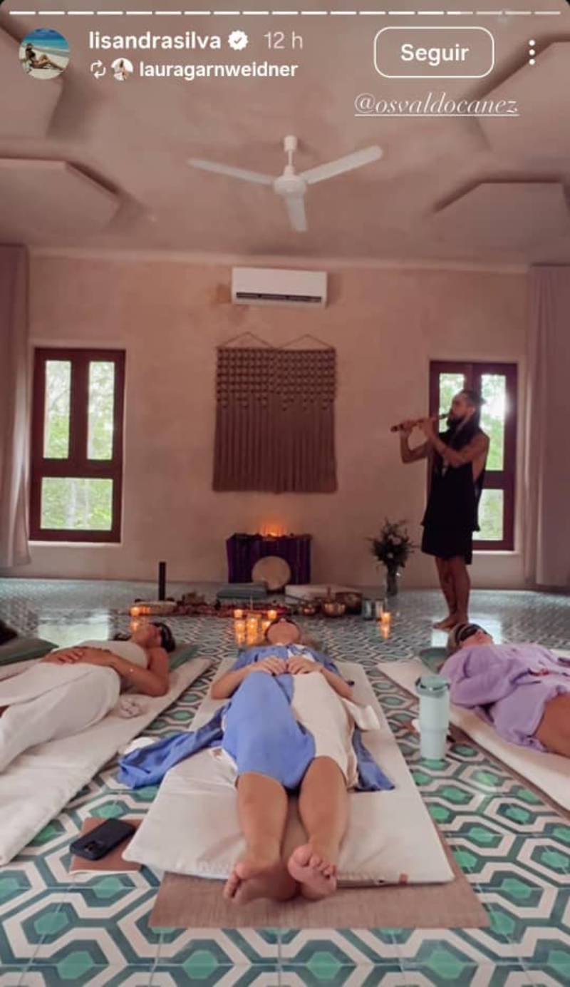 Posteriormente comparió en sus historias cómo se desarrolló su encuentro con el mentor espiritual y médico musical Osvaldo Cañez. En el video, se ve a Lisandra y otras mujeres recostadas sobre mats de yoga, escuchando con atención los sonidos que el expertó emitió con diferentes instrumentos.