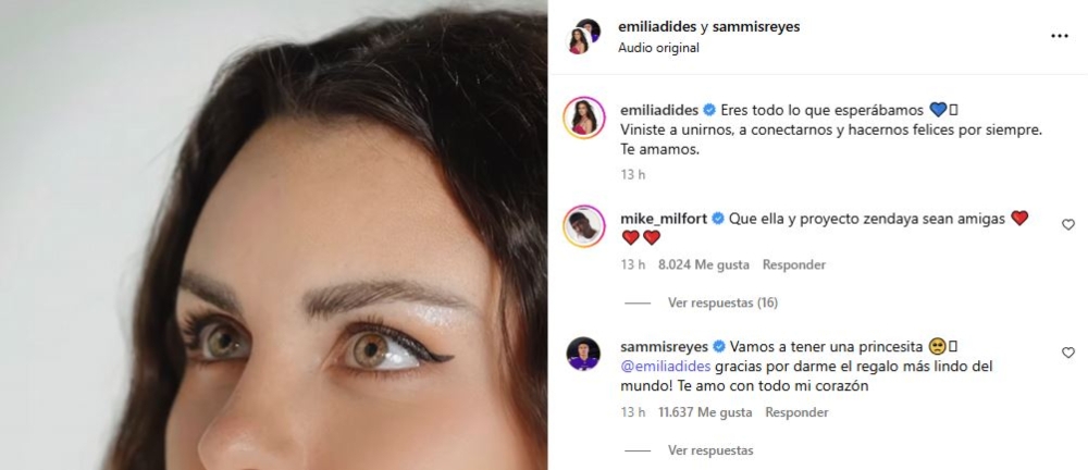 La publicación rápidamente se llenó de miles de comentarios, entre los que destacó la romántica reacción de su pololo. “Vamos a tener una princesita. Gracias por darme el regalo más lindo del mundo. Te amo con todo mi corazón”, dijo Sammis.
