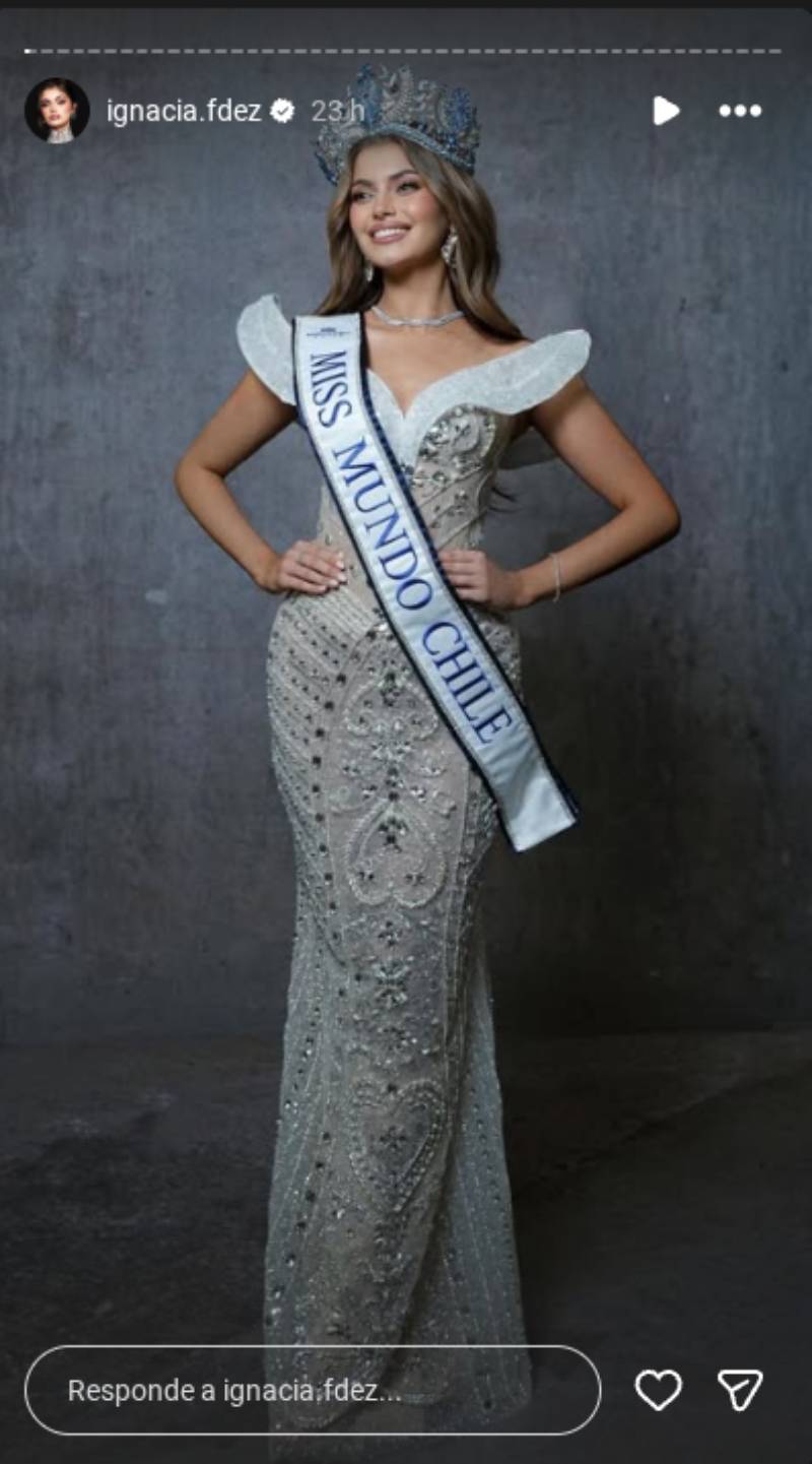 La elección de vestuario de Ignacia fue toda una joya, digna de la nueva Miss Mundo Chile, según opinaron los internautas. "Es muy lindo su vestido y ella lo modela como una reina"; "Hermoso el vestido y ella impacta con su belleza", escribieron.