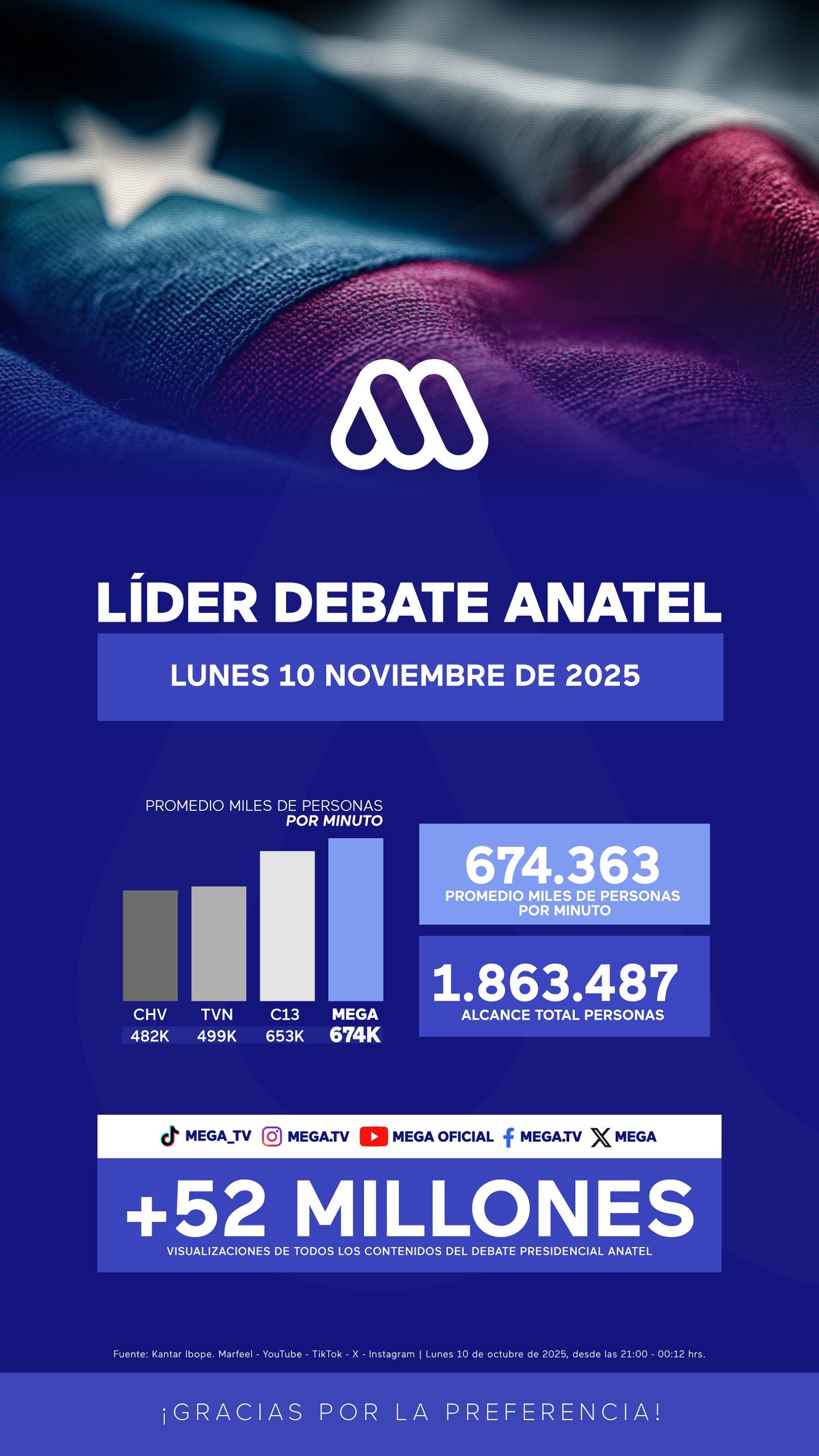 Chile eligió informarse en Mega del debate Anatel 2025