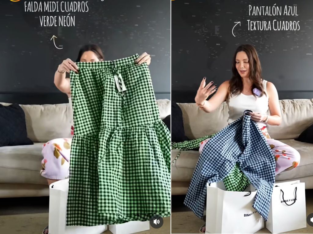 Mientras realizaba un haul de sus nuevas adquisiciones, mostró una falda midi en blanco y verde neón: el patrón que trajo la nueva colección de Bimba y Lola, la marca española que tanto ama la hija de Raquel Argandoña.
