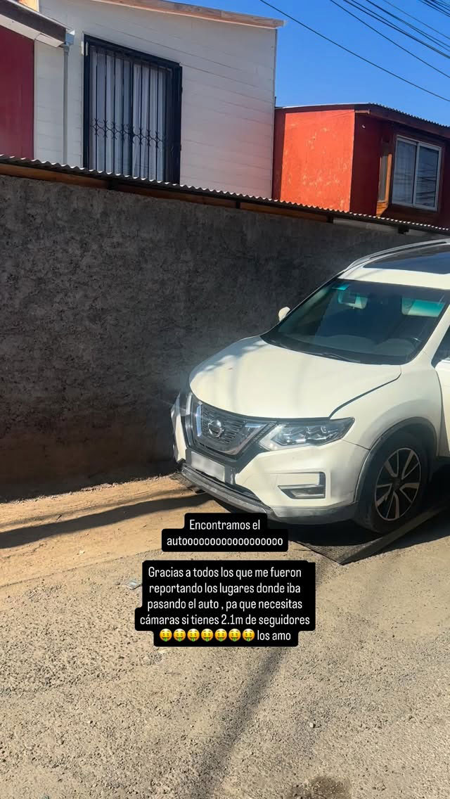 "Encontramos el autooooooooooo. Gracias a todos los que me fueron reportando los lugares donde iba pasando el auto. Pa' qué necesitas cámaras si tienes 2.1M de seguidores. Los amo", declaró.