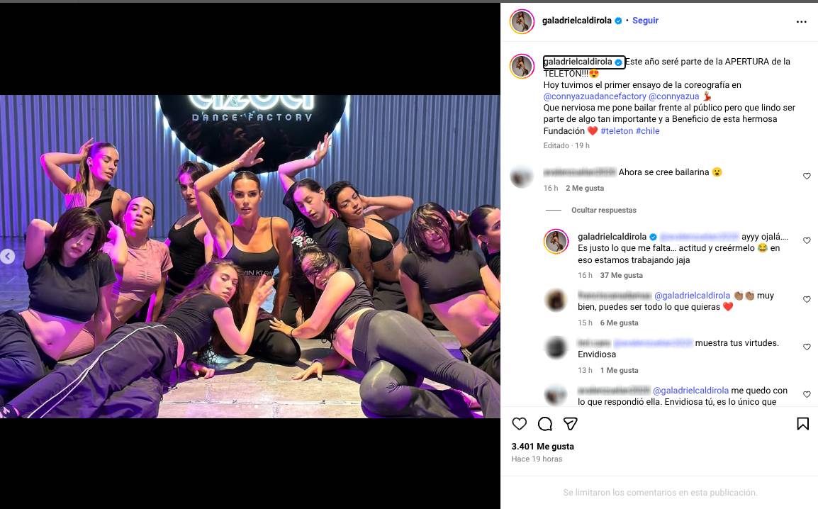En su publicación, Gala Caldirola recibió diversos comentarios positivos de seguidores que están entusiasmados por verla bailar. Sin embargo, un internauta destacó por escribir de manera irónica: "Ahora se cree bailarina".