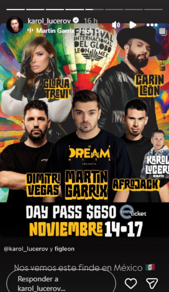Este miércoles, en una historia de Instagram, Karol confirmó su participación en el evento: “Nos vemos este finde en México”.