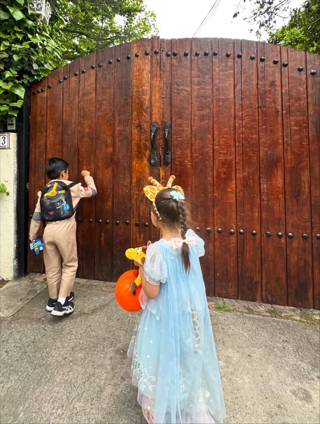 Algunas de las postales muestran a Noah y Leiah disfrutando de un día soleado en la piscina. En otras, se los ve jugar en una tienda de productos infantiles, pasear en monopatín y pedir dulces durante Halloween.