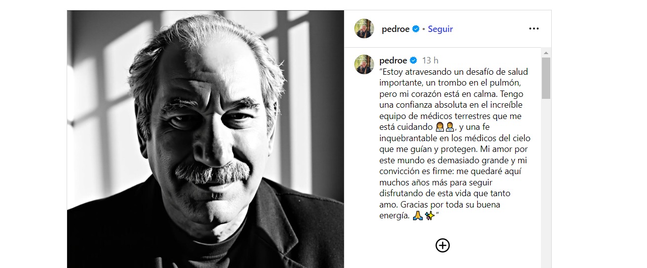 Pedro Engel compartió en su Instagram que está atravesando un delicado estado de salud, por una complicación en el pulmón, llenándose de buenas energías de sus seguidores, quienes esperan que todo salga bien.