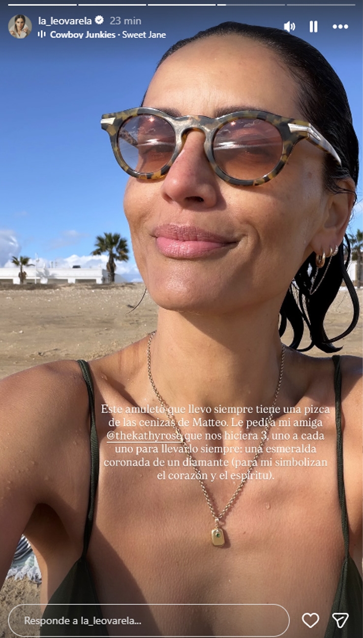 Ir a la siguiente nota"Este amuleto que llevo siempre tiene una pizca de las cenizas de Matteo. Le pedí a mi amiga que nos hiciera 3, uno a cada uno para llevarlo siempre: una esmeralda coronada de un diamante (para mí simbolizan el corazón y el espíritu)", detalló Leonor.