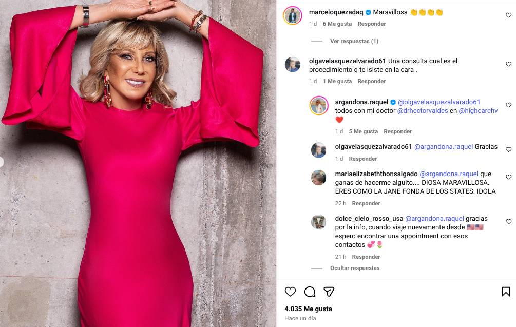 Raquel Argandoña responde a sus seguidores: "¿Cuál es el procedimiento que te hiciste en la cara?"