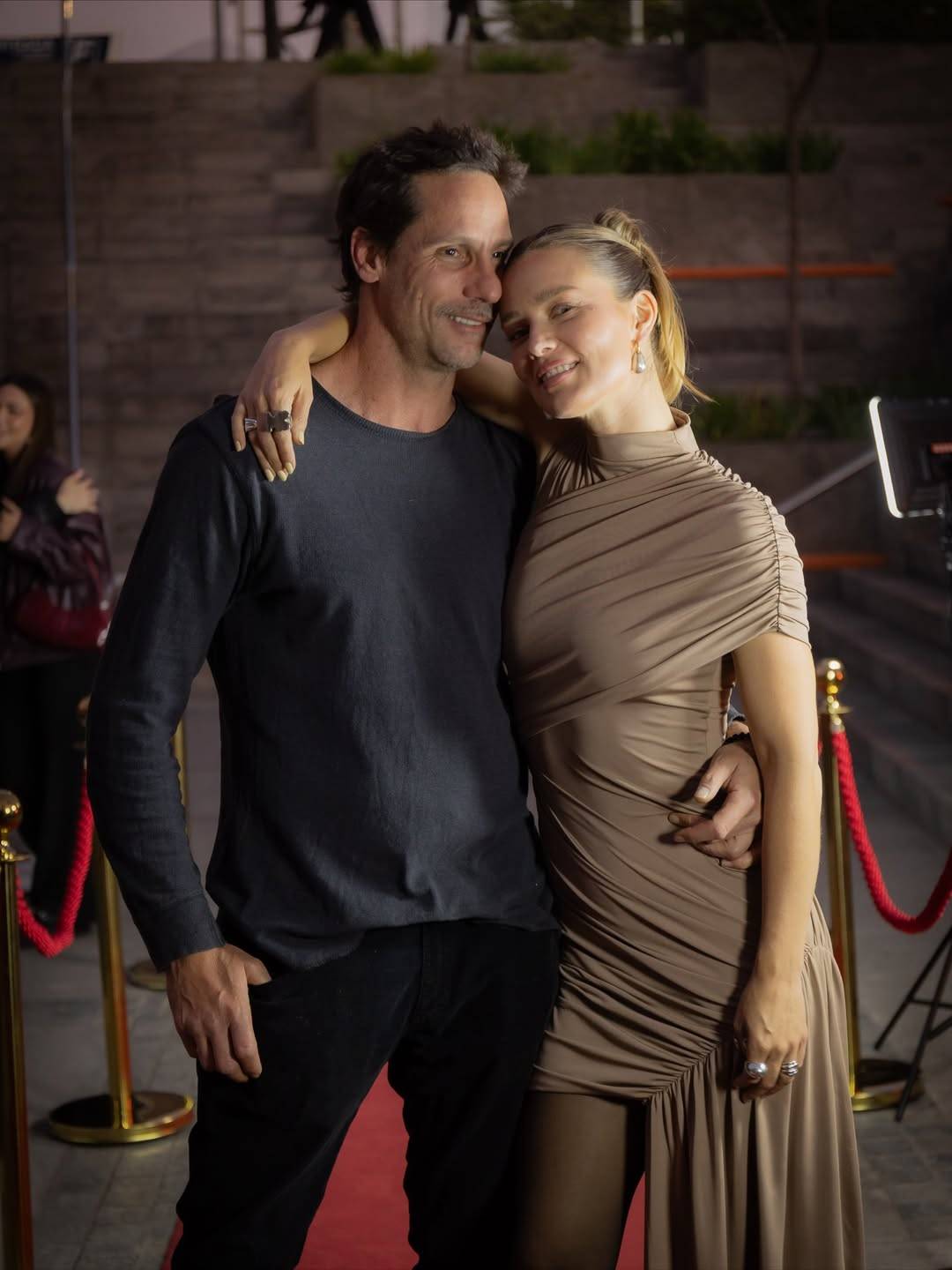 En un carrusel de imágenes que colgó en Instagram, Kika camina en la alfombra roja y también posa con su marido con su atuendo en el color que se mantiene en tendencia, el moca. Un vestido de silueta ajustada, confeccionado en un tejido sedoso, ligeramente brillante.