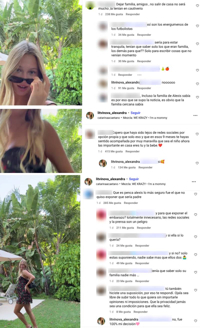 "Que es penca el Alexis, lo más seguro fue él quien no quiso exponer que sería padre", escribió otro seguidor, atacando directamente al jugador nacional. "No, fue 100% mi decisión", respondió la modelo.