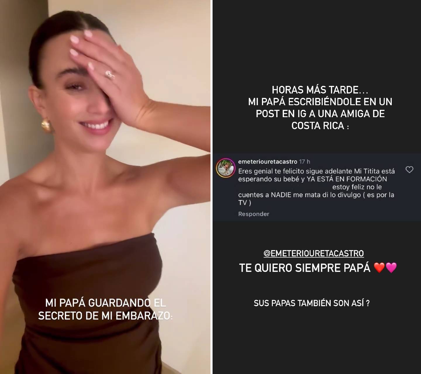 Ir a la siguiente nota"Horas más tarde, mi papá escribiéndole en un post en Instagram a una amiga de Costa Rica", dijo Tita en una siguiente historia, donde se ve el escrito de don Emeterio. "Mi Titita está esperando su bebé, ya está en formación. ¡Estoy feliz! No le cuentes a nadie, me mata si lo divulgo", reveló.
