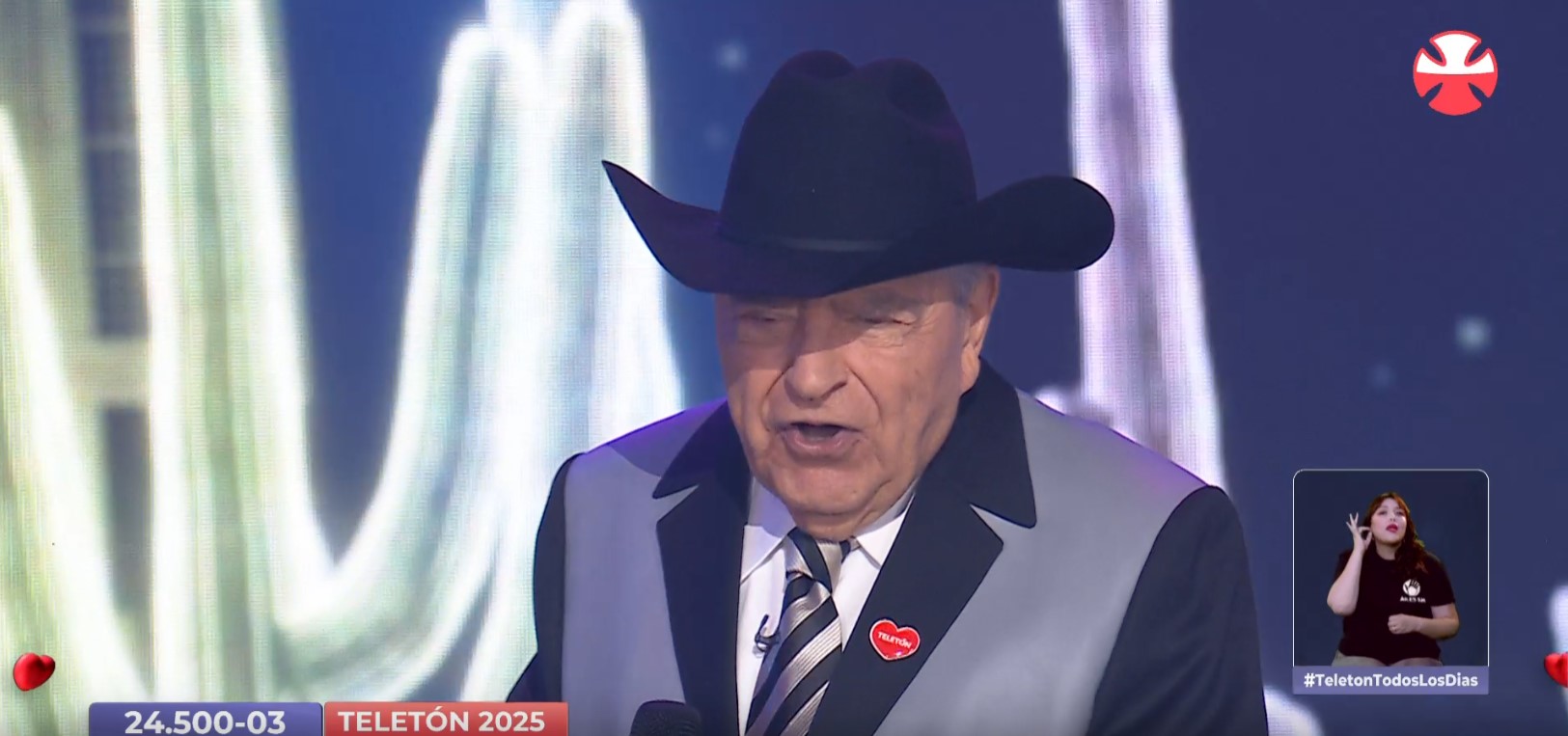 Con un enorme sombrero y vestido como un cantante de ranchera más, el animador encendió la cruzada solidaria.