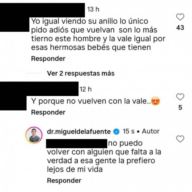 Luego, otra usuaria le pidió reconciliarse con la bailarina, y él dejó una respuesta similar, que después eliminó: "No puedo volver con alguien que falta a la verdad, a esa gente la prefiero lejos de mi vida".