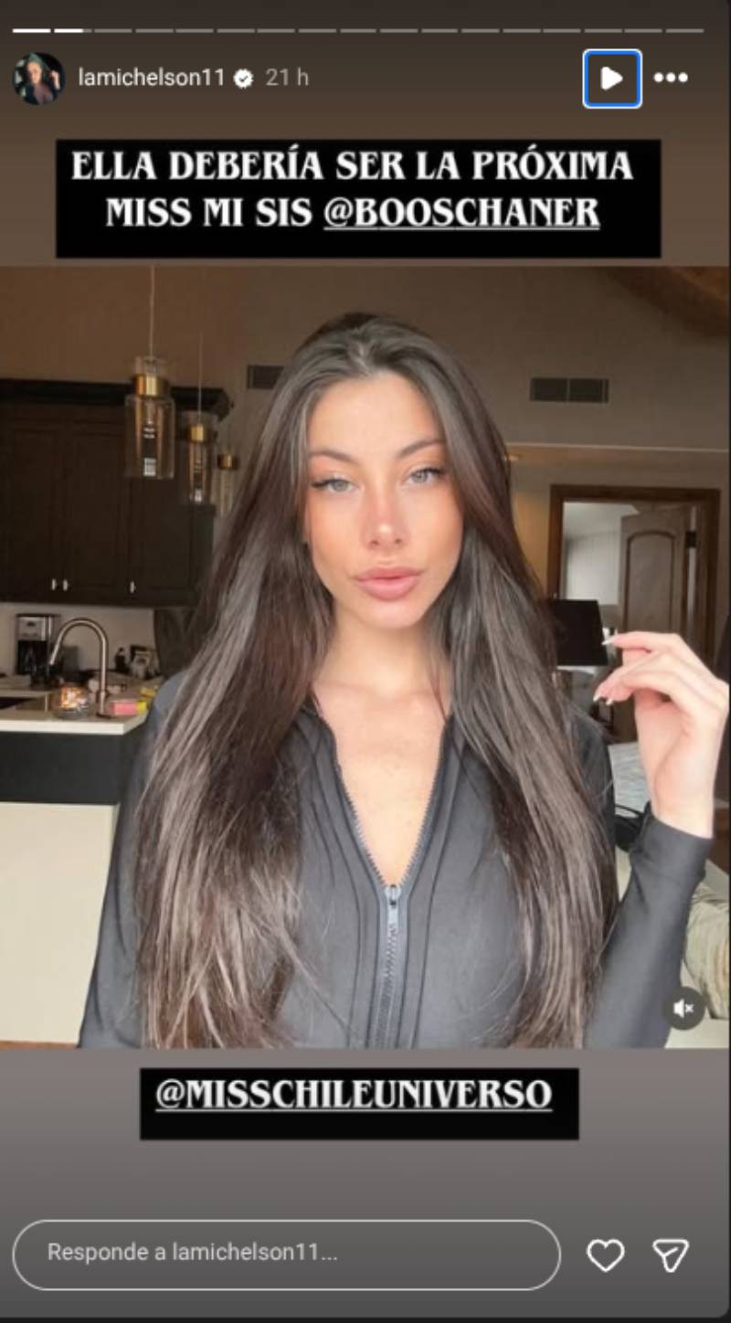 "Ella debería ser la próxima miss, mi sister", escribió en la publicación, en la que además etiquetó a la joven empresaria y a la cuenta oficial de Miss Universo Chile.