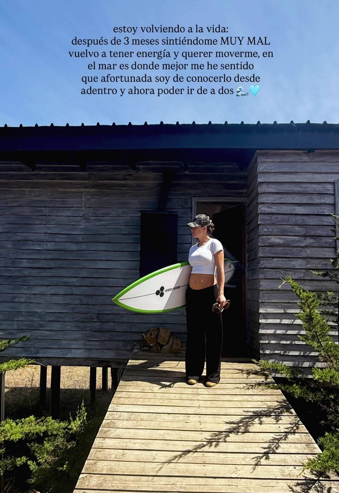 "Estoy volviendo a la vida después de tres meses sintiéndome muy mal. Vuelvo a tener energía y querer moverme. En el mar es donde mejor me he sentido. ¡Qué afortunada soy de conocerlo desde adentro y ahora poder ir de a dos!", escribió.