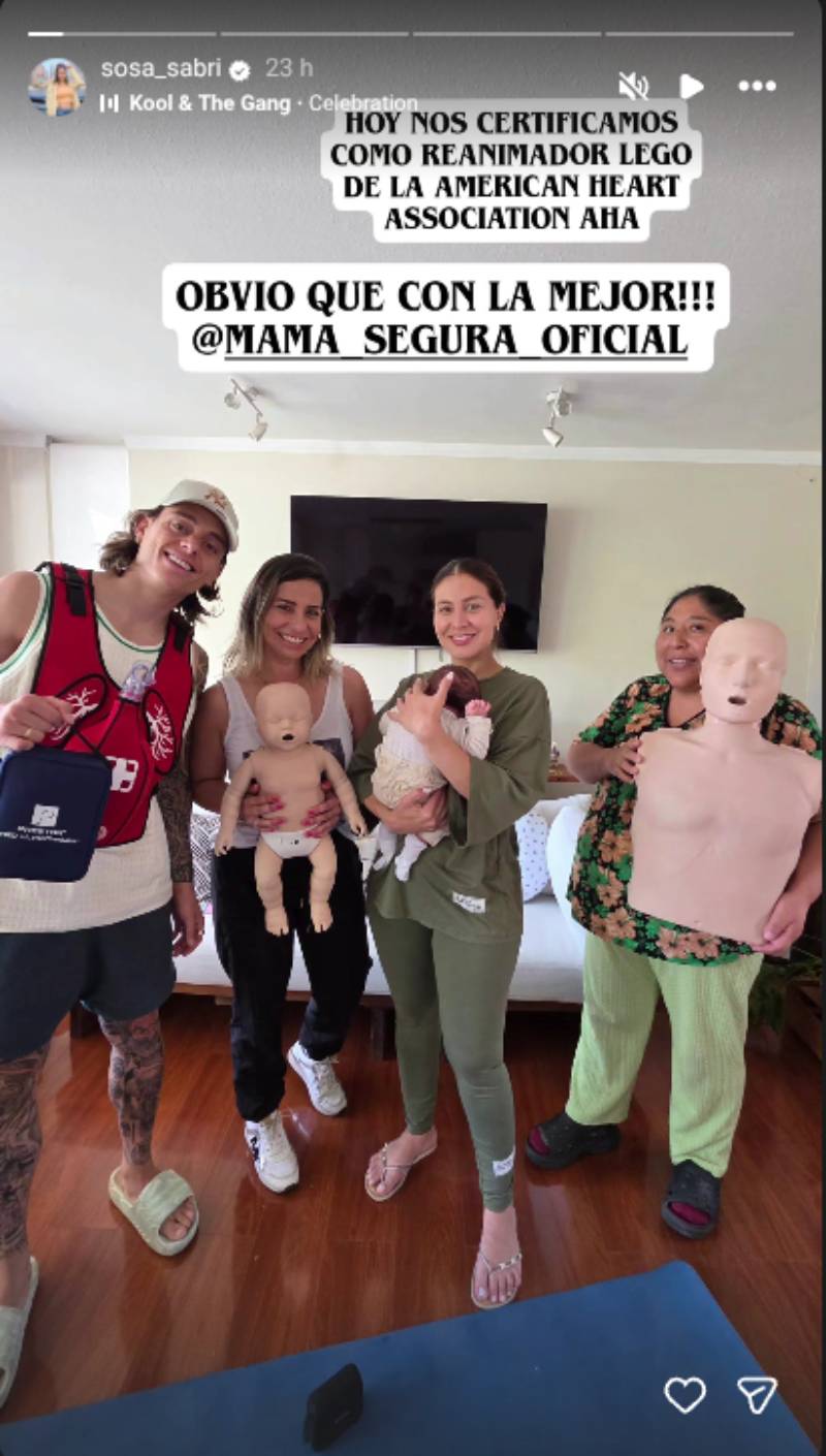 En medio de los cambios que trae consigo la crianza de su bebé Gio, Sosa compartió en sus historias de Instagram que ella y su marido se certificaron oficialmente como reanimadores.